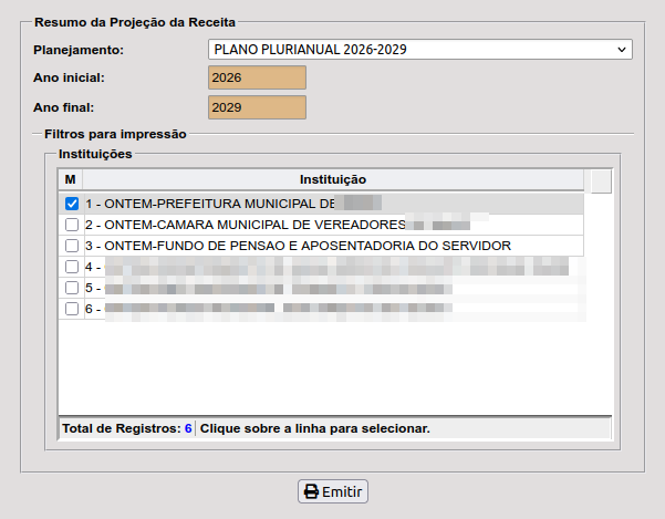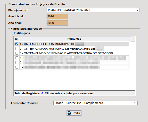 Emissão do Demonstrativo do Resumo da Projeção da Receita
