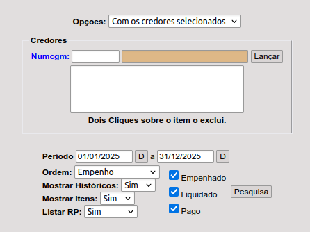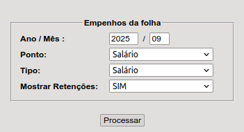 Processar: Posição atual (com base na emissão do empenho, demonstra os valores atualizados com a mesma data) ou Período de lançamentos (geralmente essa data fica diferente da emissão para conflitar por exemplo, empenhos emitidos de janeiro a junho, mas quer saber o que foi contabilizado somente em junho, então colocaria 01/06/xx a 30/06xx)