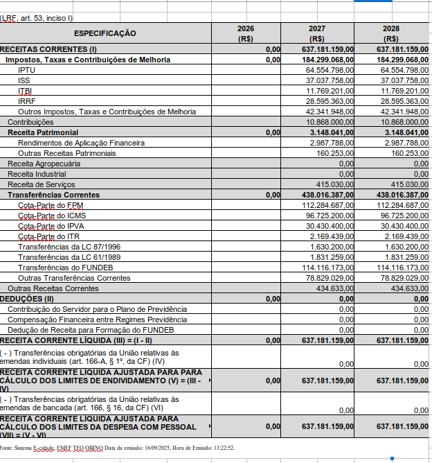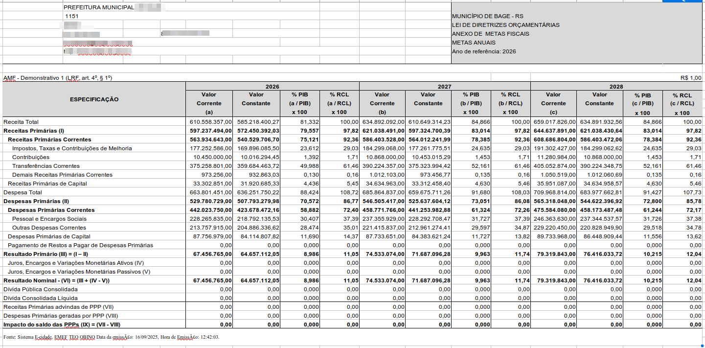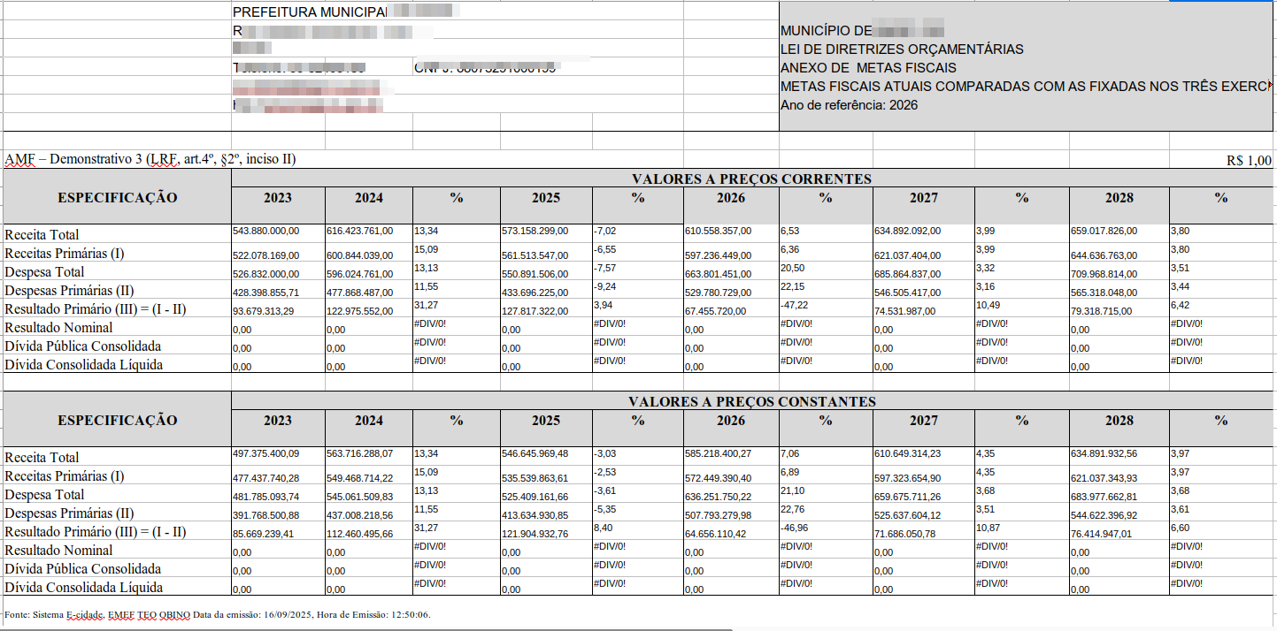 Ou seja, os valores correntes poderão ser conferidos pelos balancetes de receita e despesa dos 3 exercícios anteriores (valor orçado) e para os 3 exercícios seguintes pelo valor projetado no planejamento, para cada ano da LDO.