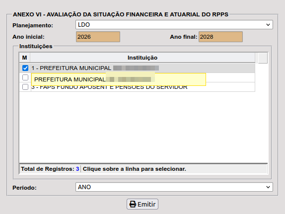 Como o mesmo apresenta informações do RPPS, esta Instituição deve ser selecionada;