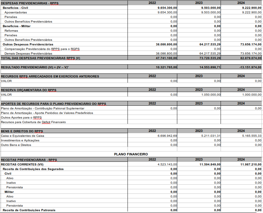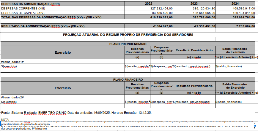 Este anexo possui dois quadros, Plano Previdenciário e Plano Financeiro, logo, deve-se informar nas edições, qual é o recurso que representa o RPPS do ente.