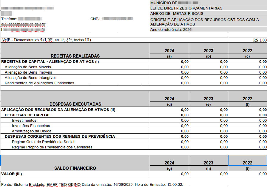 “O Demonstrativo deve conter informações sobre as receitas realizadas por meio da alienação de ativos (discriminando as alienações de bens móveis e imóveis), e as despesas executadas resultantes da aplicação dos recursos obtidos com a alienação de ativos, discriminando as despesas de capital e as despesas correntes dos regimes de previdência.