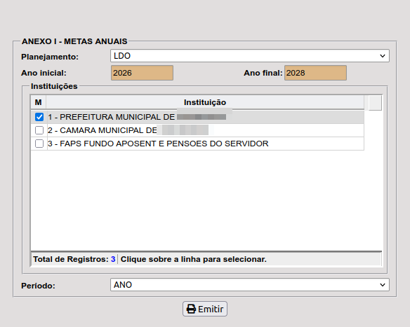 FINANCEIRO > Planejamento > Relatórios > Anexo de Metas e Riscos Fiscais > Dem I - Metas Anuais