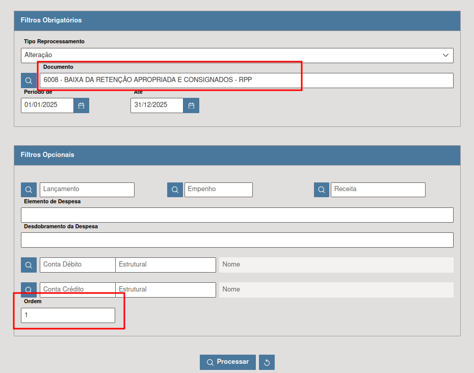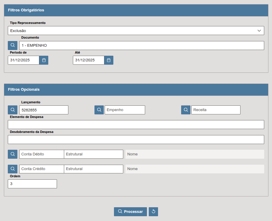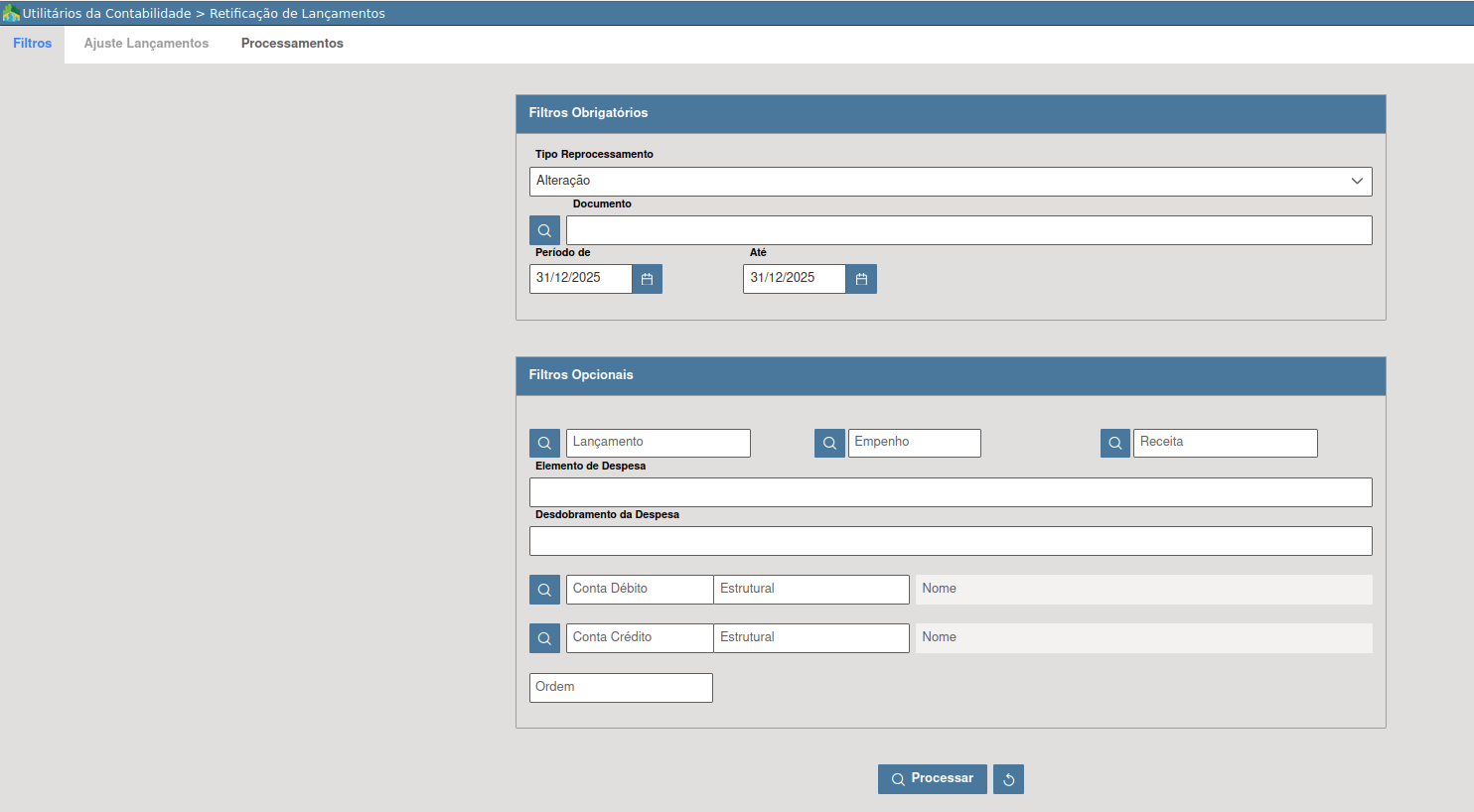Para os períodos abertos — nos quais ainda não houve envio de informações às prestações de contas do Estado e da União — o sistema possibilita o reprocessamento dos lançamentos de forma integral, com a devida atualização dos registros contábeis. Já para os períodos fechados, o sistema realiza a retificação por meio de lançamentos em data atual (período aberto), promovendo os ajustes necessários sem alterar ou interferir nos dados já transmitidos aos órgãos de controle.