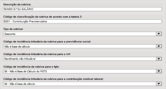 Contribuição Previdenciária RGPS sobre 13º salário, rubrica padrão do sistema: R902: