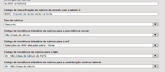 Imposto de Renda sobre Férias, rubrica padrão do sistema: R915