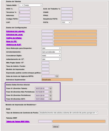Configuração de Datas para Envio(Início de Obrigatoriedade) para o eSocial: