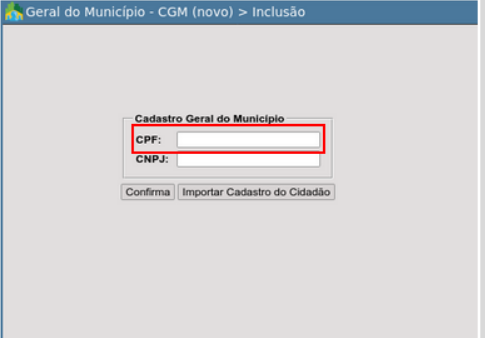 Para criar o Cadastro Geral do Município é necessário informar o número do Cadastro de Pessoa Física - CPF do profissional. Após informar o dado do documento correspondente, basta confirmar para dar continuidade ao cadastramento.