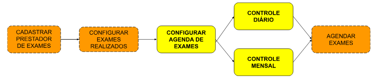 Controle Diário: Este tipo de agenda atende prestadores que possuem horários fixos para a realização dos exames, geralmente sem alterações nos dias e horários. O controle pode ser realizado definindo horários específicos para os exames ou disponibilizando todos os agendamentos no mesmo horário. Resumidamente, essa agenda é caracterizada pela rigidez no agendamento, funcionando de maneira similar ao agendamento de consultas.